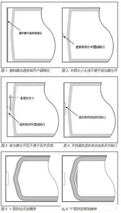 紙塑包裝袋在剝離打開時(shí),很容易出現(xiàn)有紙屑的現(xiàn)象。而出現(xiàn)這種情況后,大部分制袋操作工,都會(huì)認(rèn)為是操作不當(dāng)或材料的原因。當(dāng)然,也有部分確實(shí)是材料的性質(zhì)緣故,如涂膠紙涂膠的均勻情況不佳,膠水本身的粘合強(qiáng)度不合理等;還有是操作失誤造成剝離強(qiáng)度過大,而產(chǎn)生剝離時(shí)有紙屑現(xiàn)象。但還有很大一部分原因,是由于設(shè)計(jì)時(shí)的疏忽,沒有真正了解紙塑在燙合制袋時(shí)的實(shí)質(zhì),從而導(dǎo)致剝離打開時(shí)產(chǎn)生紙屑。